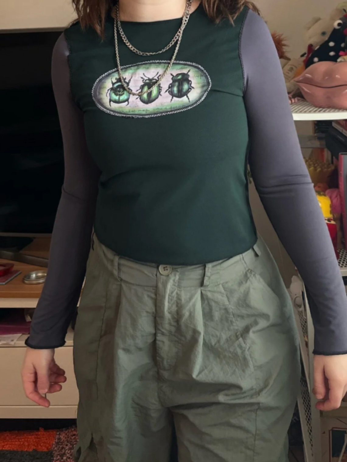 Made of bottle green and dark gray stretch fabric with black stitching. Machine wash safe.Please allow 21 business days for lead time from order to shipping.